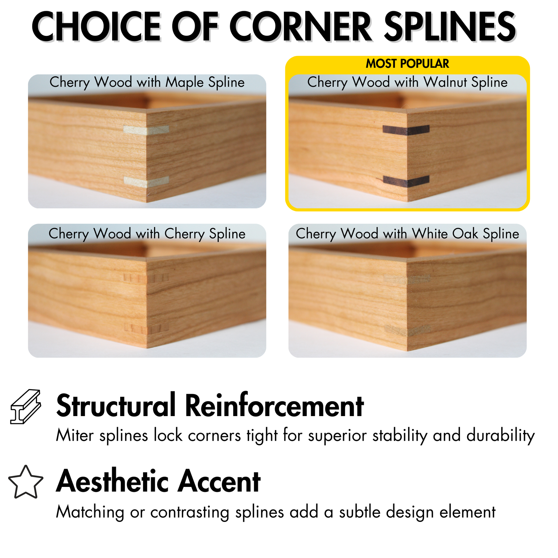 This frame gives your art the breathing room it deserves. The thin face keeps the focus on the canvas, while natural wood tones add warmth to any room. Precision cut miter splines in contrasting wood reinforce every corner, so the frame stays strong even in busy, well-loved spaces.