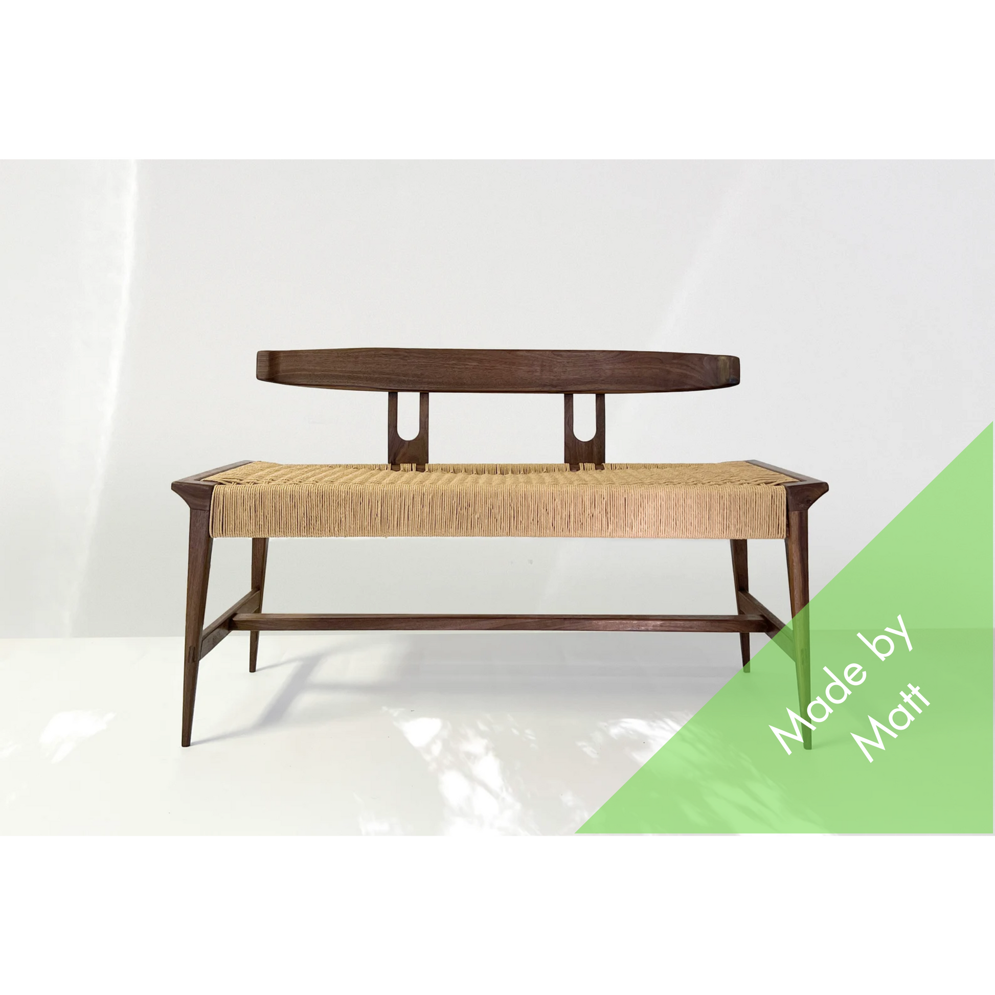 Walnut Danish Cord Entry Bench – Handwoven Mid-Century Modern