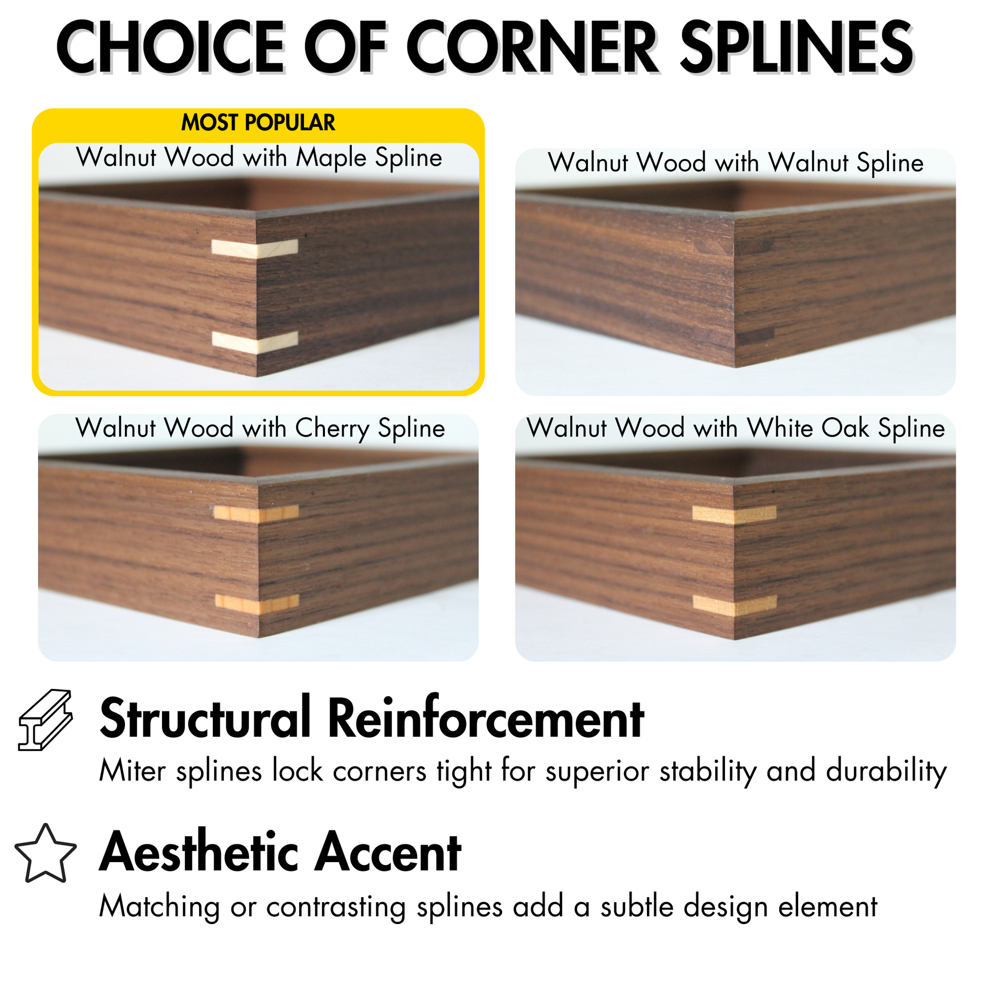 This frame gives your art the breathing room it deserves. The thin face keeps the focus on the canvas, while natural wood tones add warmth to any room. Precision cut miter splines in contrasting wood reinforce every corner, so the frame stays strong even in busy, well-loved spaces.